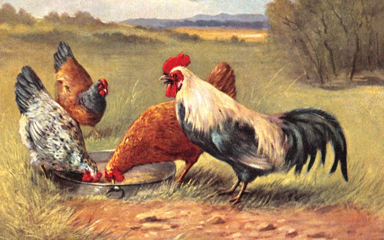 - Teprve k ránu všecko utichlo, když nad tisícem na svahu roztažených hodovníků zaznělo první kuropění kohoutů chrámových. Když se cizí hosté prospali. . . (1901)