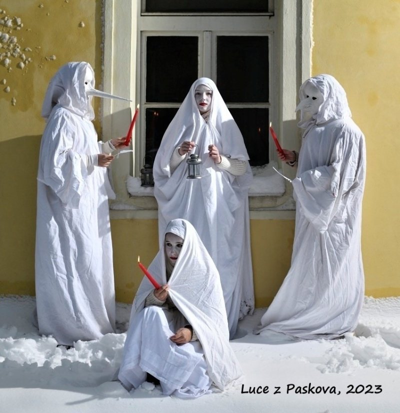 Úmysly Lucek nebyly vždy tak čisté jak jejich bílé šaty, nosily totiž veliké nože a hrozily dětem, které se na štědrý den nepostí, že jim rozpářou bříška a naplní kroupami. Ale naopak ty děti, které se uměly hezky pomodlit, obdarovávaly. Někde však s nimi chodily i další masky: poustevník, kominík, řezník, cikánská rodina.