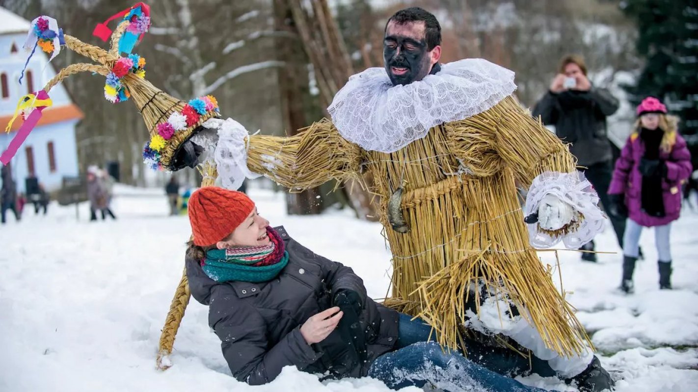K utužení zdraví a plodnosti žen sloužila slaměným tzv. „ježovka“, krátká tyčka s ježčí kůží obalená v látce. Tento falický symbol strkají ženám pod sukně na znamení kopulace. Za slaměné se převlíkají výhradně ženáči.