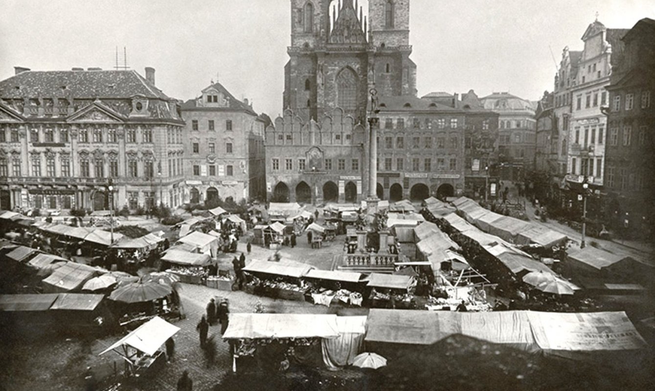 fotografie: Mikulášský trh na Staroměstském náměstí, kolem r. 1900