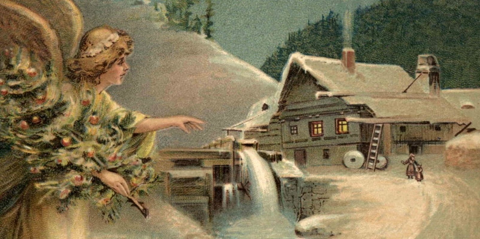 Letíme duší do minulých dob. Vidíme maličkých bytostí kruh, v kruhu stromek, jak ve světlech tone, radost a blaženost má každičká tvář — hle, vždyť jsme to my, sami! Radostí buší ta srdéčka malá, radostně dme i všem starším se hruď. Ze stínů kouta nás vnímají zraky, skvěje se upřímné radosti blesk. Tam za okny temno, noc tiše jde dál a na zemi snáší se drobounký sníh.