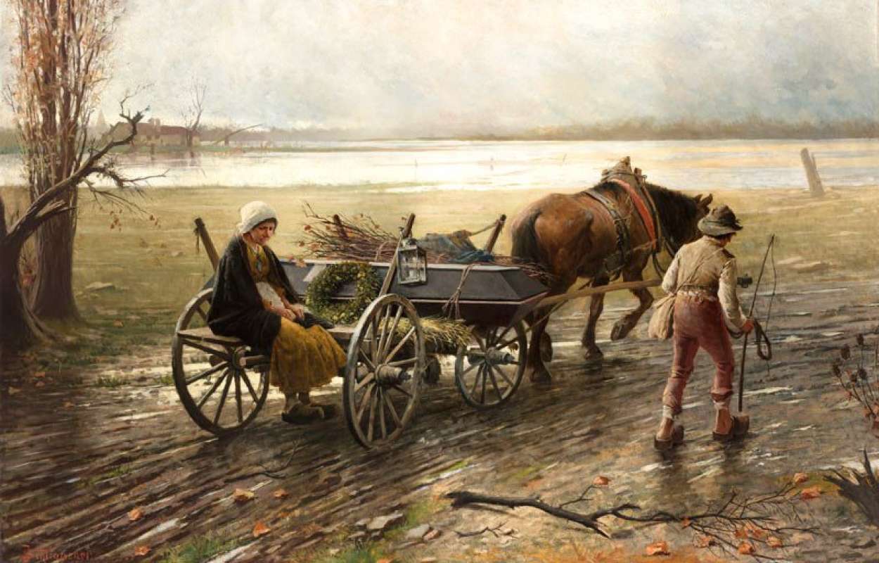 obraz: autor Jakub Schikaneder (1855, Praha - 1924, Praha), Sníh a Poslední cesta