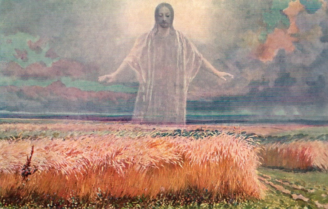 vyobrazení: pohlednice, Ladislav Svobodník (1904 - 1970) a Adolf Liebscher (1857, Praha – 1919, Potštejn), Chléb náš vezdejší dejž nám dnes!