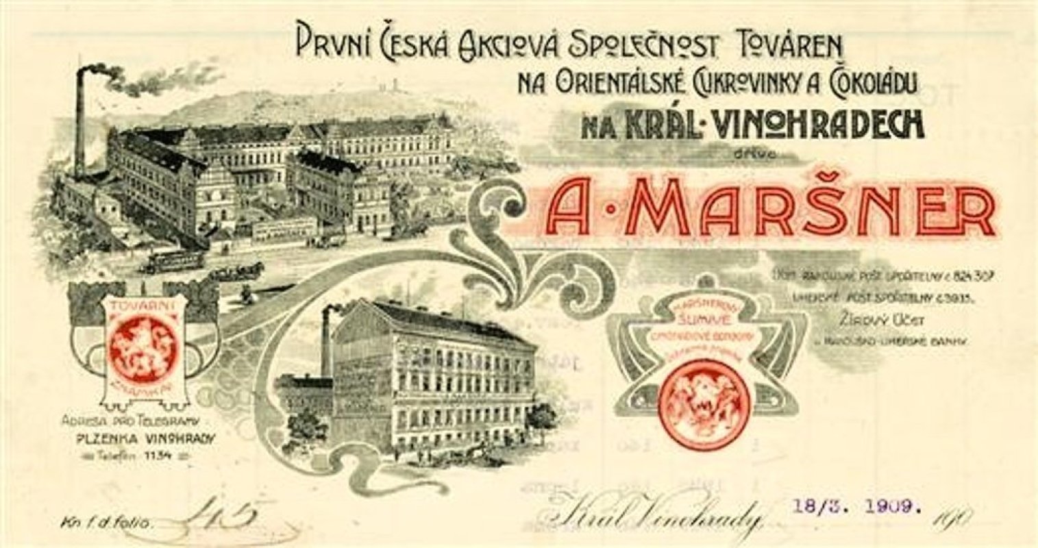 V roce 1909 nabízí firma Maršner „závěsky na stromek vánoční, chutě a jakosti výborné“. V březnu 1914 byla zaregistrována značka Orion, což znamenalo novou éru a budoucnost pro vysoce kvalitní čokoládu. Výrazným symbolem značky se stala čtyřcípá hvězda, jejímž autorem je již zmíněný Zdeněk Rykr. V inzerátu z roku 1915 nabízí tato firma obchodníkům cukrovinky na vánoční stromek fondánové, likérové, pěnové, mandlové 140 ks za K 2,30. V roce 1928 stála nejdražší kolekce od firmy Orion 125 Kč a měla 260 figurek. Tehdy to představovalo 20 % průměrného platu rolníka.