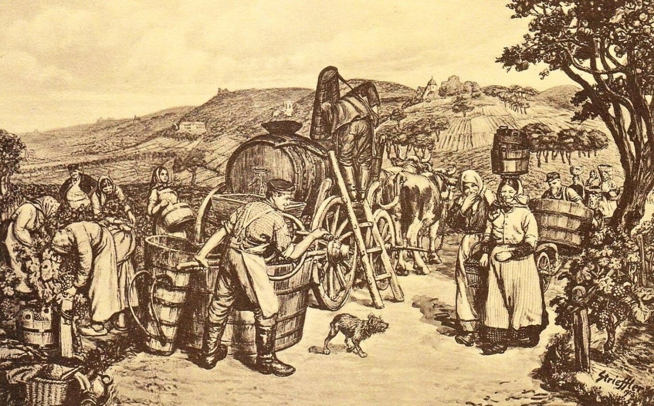 Připravují sudy, také kádě, neb každý miluje víno hojně.