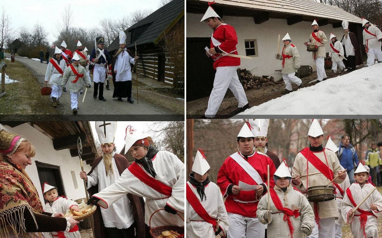 Na sklonku 18. století zapsal písmák Jan Fr. Vavák, že v Polabí se chlapci zdobili barevnými pentlemi, v rukou měli hole a koše a obcházeli jednotlivá stavení. Dostávali jídlo i drobné mince "pro pana učitele na inkoust". U každého stavení se zastavili a před hospodářem a hospodyní spustili na pokyn kantora pěknou rýmovanou koledu. Např: