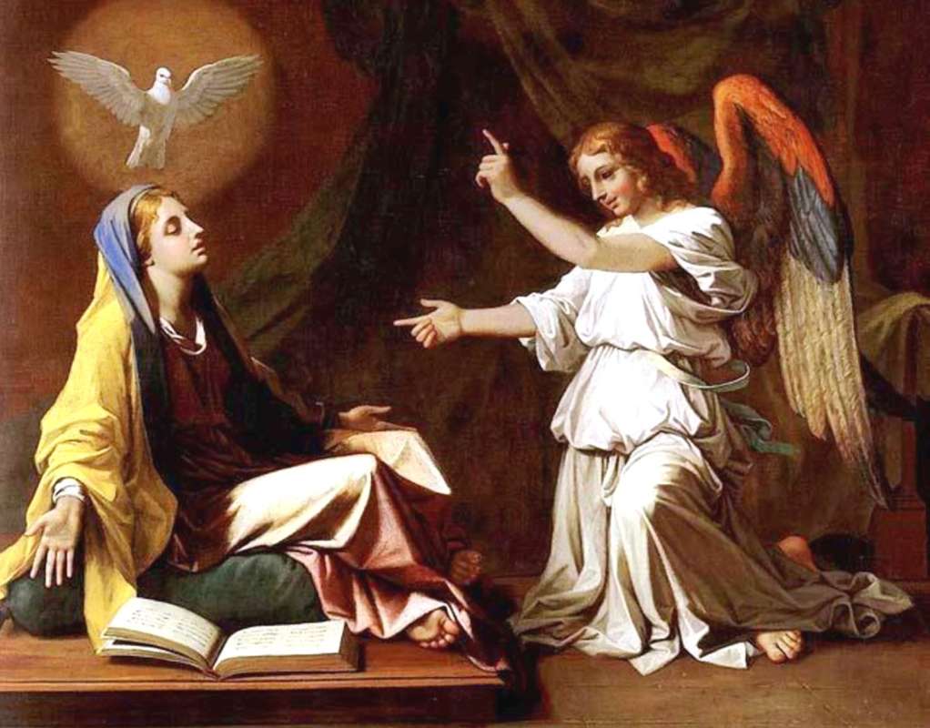 Bůh poslal anděla Gabriela jako svého posla do Nazareta k panně jménem Maria. Byla zasnoubena s Josefem, mužem z rodiny krále Davida. Gabriel přišel k Marii a řekl: Raduj se, Maria! Bůh je s tebou. Vyvolil tě. Maria se lekla a uvažovala, co by měla tato slova znamenat. Avšak Gabriel řekl: Neboj se, Maria, neboť jsi našla milost u Boha. Bůh tě má rád. Dostaneš dítě, porodíš syna. Dáš mu jméno Ježíš. Bude velký a bude se nazývat Syn. Nejvyššího. Maria se zeptala: Jak se to může stát, vždyť nepoznávám muže. Gabriel odpověděl: Sestoupí na tebe Duch svatý, síla Nejvyššího. Pro Boha není nic nemožného. Tu řekla Maria: Jsem služebnice Páně. Ať se mi stane, co Bůh chce. (zdroj: catholica.cz a posvet.cz)