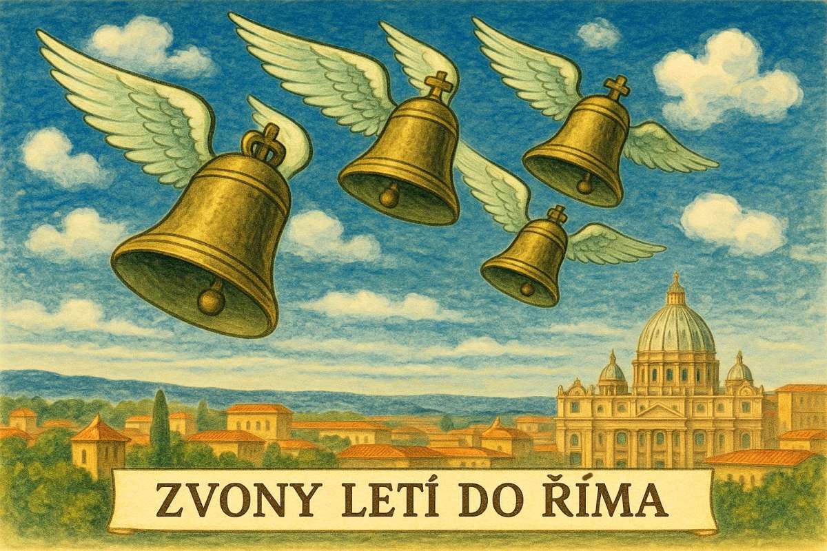 Někdy se tvrdí, že zvony odlétají proto, že se bojí řehtaček. Letí zcela tiše, první ty nejstarší, které znají cestu, na konci malé, aby se neztratily, průvod uzavírají Zikmund z chrámu svatého Víta a Marie z Týnského chrámu – veliké české zvony, které již po léta slouží jako stráž. V tomto průvodu se objevují i někteří podivní hosté – zvonový kov se totiž ani při rozlití nezbavuje povinnosti vykonat každoroční pouť do Říma, a tak jedna pověst vypravuje, jak dělostřelci v bitvě na Piavě postrádali o velikonoční noci svá děla.