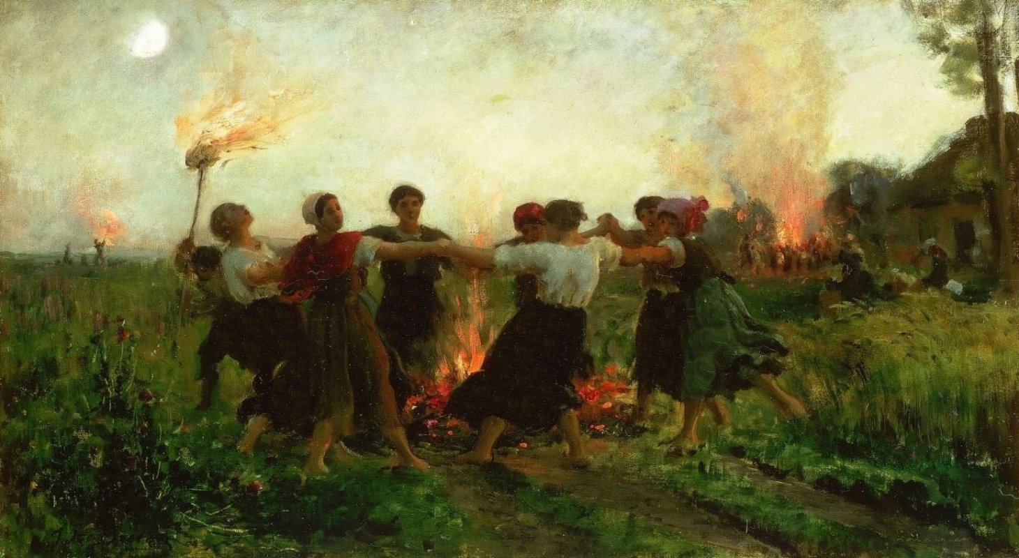 V tajemném šeru svátečního večera si mladí ozdobili hlavy věnci, opásali se černobílem a za jásotu a zpěvu tančili kolem ohňů. Uprostřed hranice dřeva se místy vztyčil i kůl s figurou ze slámy a zavěsily se na něj zelené věnečky jako symbolické oběti ohni. Když se hranice zhroutila a kmen spadl, každý se snažil věneček nebo aspoň jeho část ukořistit, protože to byl kouzelný prostředek k ochraně dobytka. Přes věnce uvité z černobýlu se mládež dívala do plápolající hranice, aby je nebolely po celý rok hlava a oči. Svatojánské ohně se pro získání síly a pro očistu přeskakovaly, někdy i ve dvojici. Skákání přes oheň v páru mělo zajistit pevnou vazbu mezi mužem a ženou a šťastný vztah. Od ohně se zapalovala i stará košťata pomazaná smůlou, kterými se pak kroužilo, nebo se vyhazovala do vzduchu. Kolikrát dotyčný mladík vyhodil koště do vzduchu, aniž zhaslo, tolik let měl zůstat zdravý. V některých částech Evropy se z kopců do údolí pouští hořící kola od vozů, či sudy, symbolizující obraz slunce, které dostoupilo svého vrcholu a odtud již jen klesá. Podle toho, jak jelo kolo dlouho z kopce dolů se věštilo, jak bude dlouhé léto.