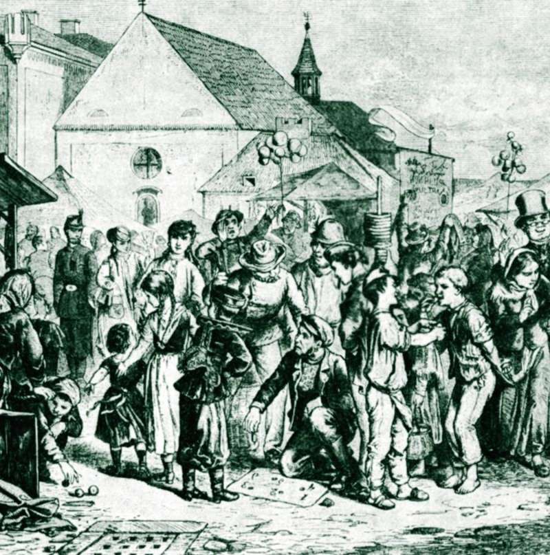 Nezaměnitelnou atmosféru tohoto lidového veselí mistrovsky zachytil malíř Antonín Gareis. Na jeho obraze ožívá pestrý svět, kterému v pozadí dominuje kostel svatého Josefa. Před ním se v hlučném reji mísí preclikáři s koši plnými pečiva, pekaři vystavující obří rohlíky a ‚vorličkáři‘ zkoušející štěstí s kostkami přímo na zemi. Mezi stánky se proplétají řemeslničtí učedníci, vojáci v uniformách i tehdejší městští šviháci. Prodavači točivých bukačů a smích, vytvářející fascinující směsici staropražského života, která dodnes dýchá z každého detailu Gareisova díla.