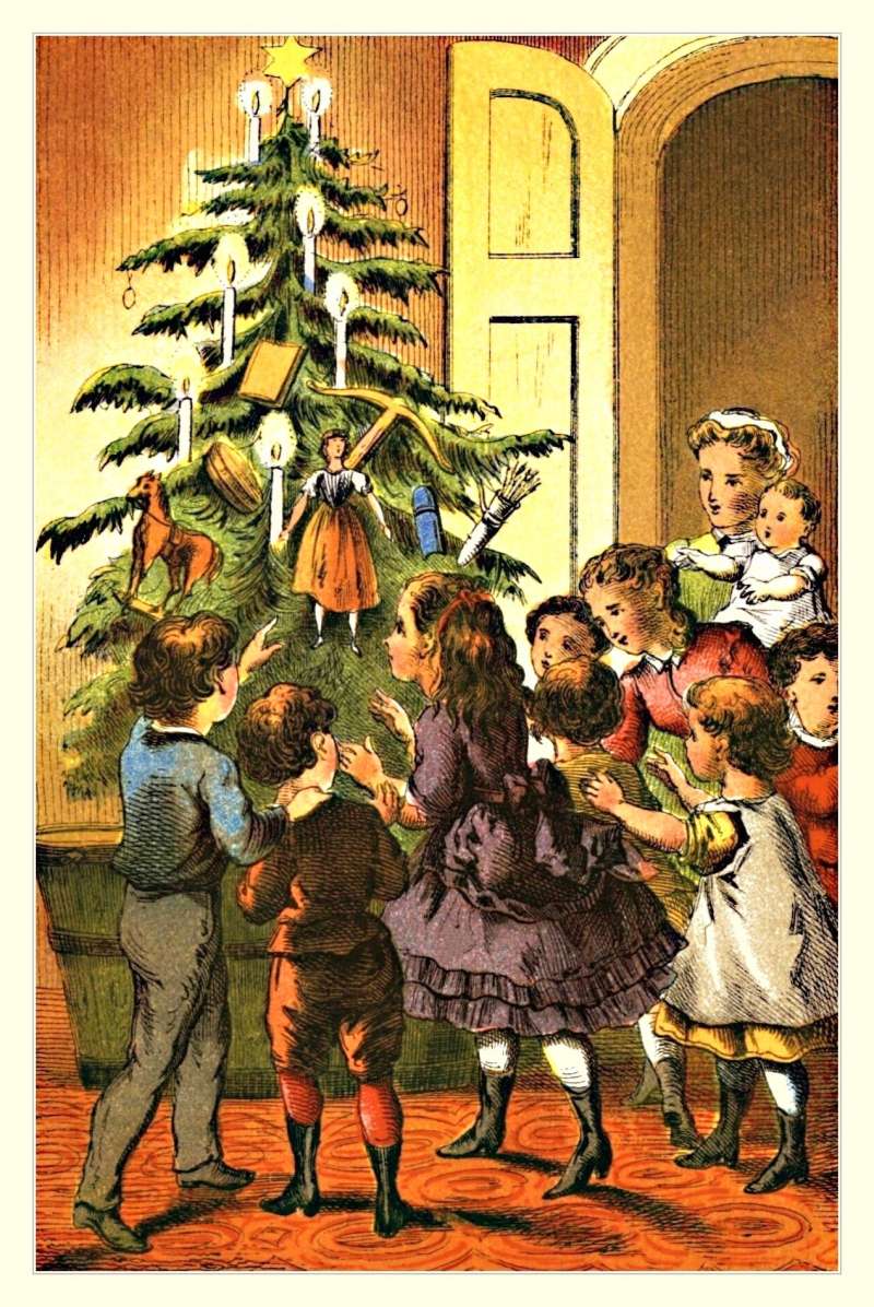 Obrázek pod textem je z roku 1875, a tak si můžeme udělat představu, jak býval vyzdobený vánoční stromeček před cca 150 lety. Také je velmi zajímavá poznámka v textu: "Staročechové ze stromku vánočního nesbírali ovoce a darů, ale setřásli jich po večeři", s tímto obyčejem souvisí i nynější třesení ovocnými stromky v týž den na zahradě rovněž po večeři a při průpovědi: "Stromečku, vstávej, ovoce dávej!" Také osvětlení stromku s tím souhlasí, že Vánoce mají u nás název "světlé hody", "světlé svátky". (Sepsáno v Podmoklích u Děčína 1874, Fr. Doucha)